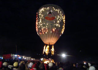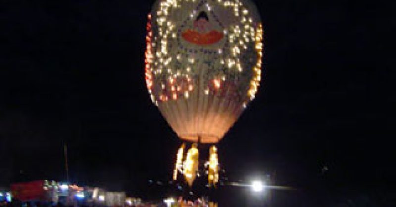 On the occasion people enjoy fun and merriment by holding firework-launching competitions. The firework is in the form of rockets. There is also hot balloons competitions on the day and night occasions. Day balloons are usually in the form of Pagodas. and animals such as elephant. dragon or ducks while the night balloons usually in the shape of rugby ball. huge elongated paper balls with small lighted multicolored paper lanterns hung around their sides and balloons would sting along fireworks and fire sticks which are set off mid-air fireworks.