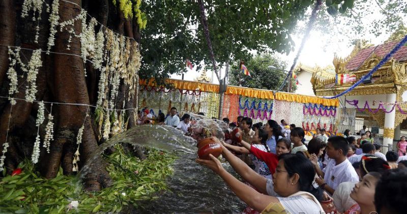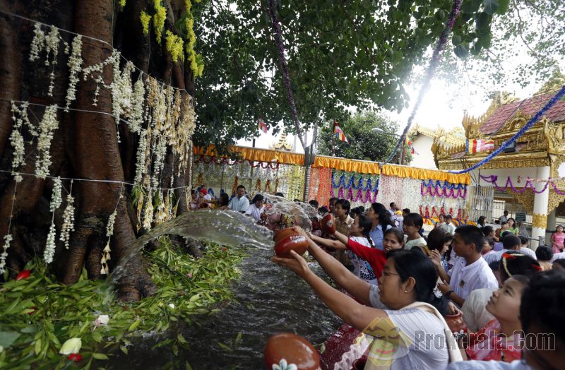 The month Kason usually falls on May of the English calendar. The month of excessive great. It is the season water in all ponds. lakes and creeks reduces to its lowest level. During the month of Kason the length of the day is longer and the night is shorter. People of Myanmar regard the month of Kason as Taurus) season and the sign of the podiac is a ball. The seasonal flower is Sagar and this festival is water pouring ceremony at the maha-Bodhi tree. the holy Banyan tree at the foot of which the Buddha attained Buddhahood or enlightenment. As the month of kason is at the middle of the hot reason. the earth is dry and people pour water at the Maha-Bodhi tree to make sure it does not die of drought during the hot summer. This has become an integral part of Myanmar culture and on every full-moon day of kason. the Buddhist people would march in a grand procession to the Bodhi tree or to the pagodas to pour scented water.