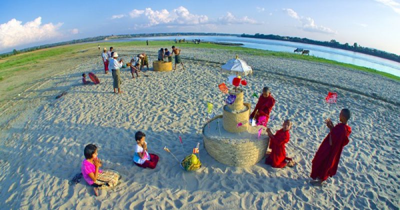 One of the traditional festivals of the month Tabaung (March) is the festival of the pagoda or stupa on the broad sand banks along the river of the locality. It falls on the full moon day of the month, Tabaung. During the Pagoda festival, there are shopping malls where the visitors from adjacent villages buy and sell. The free shows of Theatrical troupes, dancing troupe and marionette troupe are engaged.
