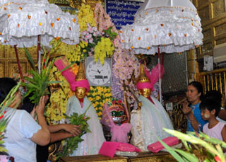 The Myanmars still worship them vigorously. and believe that the Nats can bring luck and prosperity to the worshippers and can also bring danger to those who do not respect them. The word “Nat” is unclear. It may be derive from the Hindu Natha which means lord. savior or protector.
