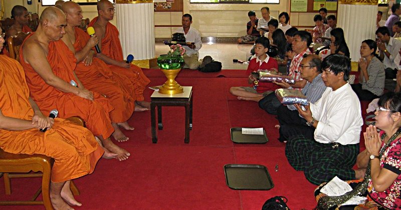 The Waso Robe Offering Ceremony marks the beginning of the three-month Buddhist Lent in the month of Waso (June/July). This ceremony celebrates the Buddha’s fist sermon, delivered forty-nine days after he attained nirvana. During the ceremony, monks are offered robes to wear during Lent, a time when they are not allowed to travel. No weddings, feasts, or festivals are celebrated during the Buddhist Lent, and people try to follow the Five Precepts more concientiously.